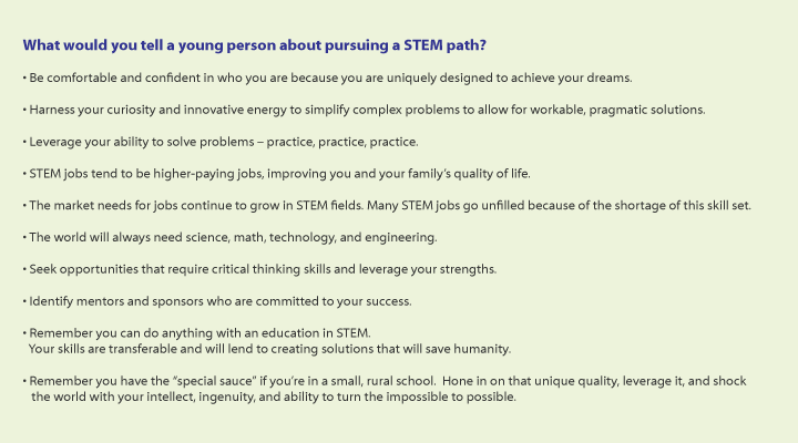 Specifically, one of her goals is to recruit girls and young women into the STEM fields. She wants all girls to know that, through STEM, you can do whatever you want because your foundation of problem-solving is solid. So dedicated is she to supporting the next generation of STEM superstars, a colleague from her career in the biotech field acknowledged her impact by establishing the Machelle Sanders Science Opportunity Scholarship. This need-based scholarship offers assistance to students in the College of Sciences at NC State, with preference given to students from northeastern North Carolina counties — the very same region where Sec. Sanders made her first leap into science, math, discovery, and the never-ending pursuit of an answer to “why?”